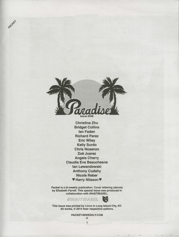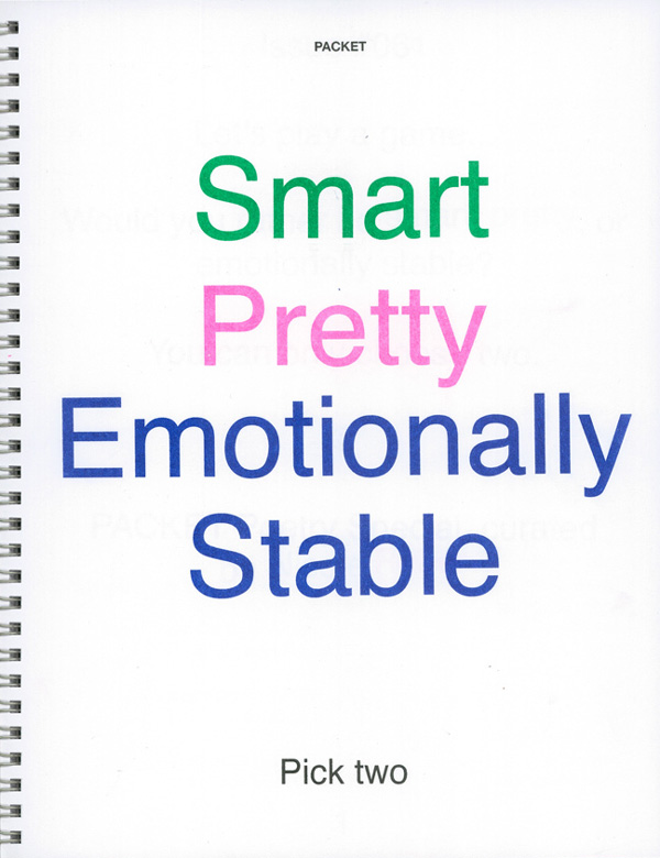 Packet is collective and contribution-based with focus on process and experimentation in work. Biweekly issues collect work of the present rather than a theme. In this way Packet is a holding shape for immediacy, irreverence, and the 'par-baked.'